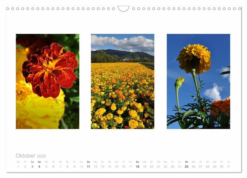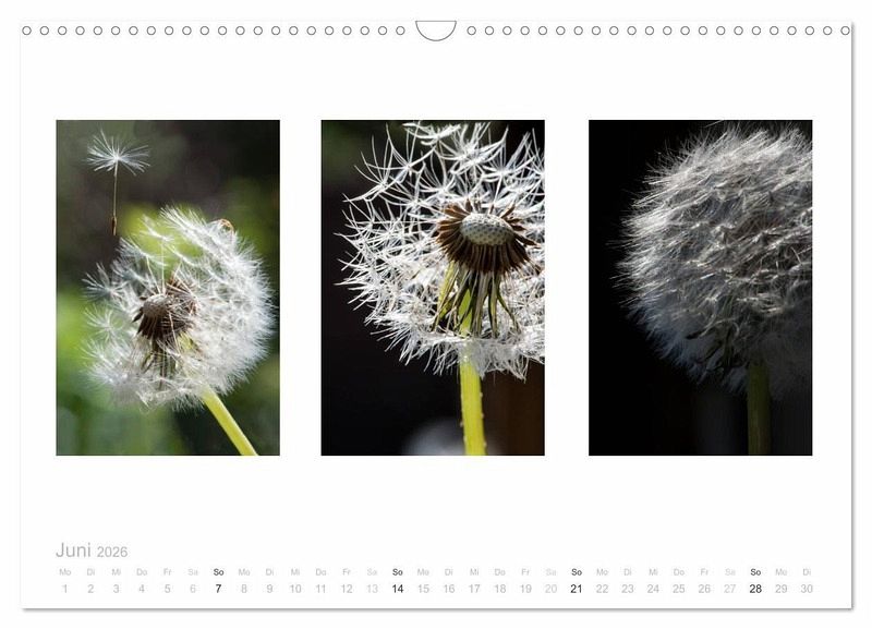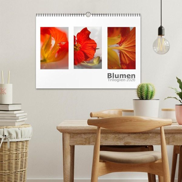 Jeden Monat drei Bilder der selben Blüte. Abwechslungsreich und ganz besonders, ist dieser außergewöhnlich schöne Blumenkalender. Die Bilder sind auch nach Ablauf des Jahres ohne Kalendarium ein idealer Schmuck für jede Wand.