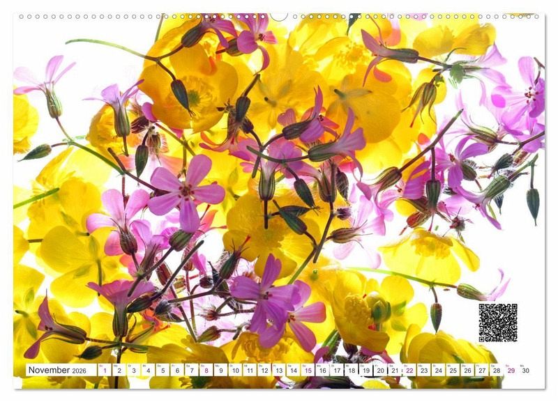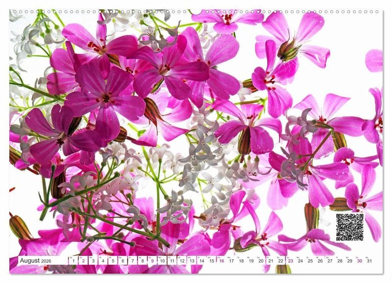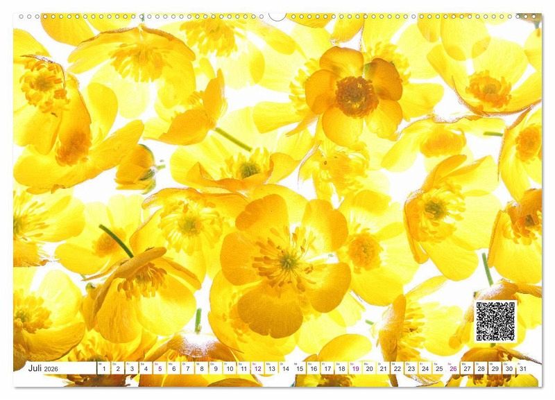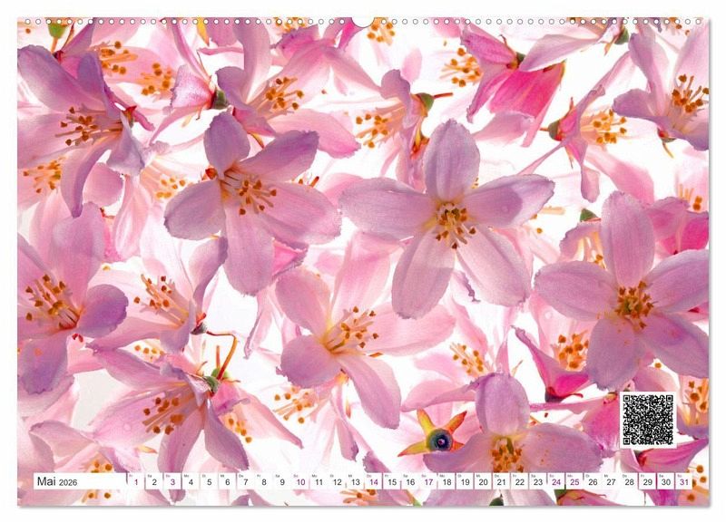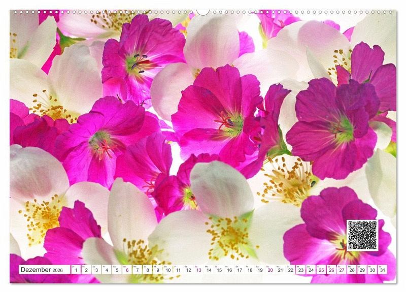Wunderschöne, helle und farbenfrohe Blütenträume mit selbst komponierter, zauberhafter Klaviermusik zum Download per QR-Code auf jedem Kalenderblatt zum Erholen, Relaxen, Ausruhen und sich einfach Freuen.