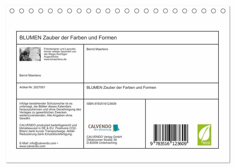 QUALITÄT - Hochwertiger Fotokalender mit 12 wunderschönen Motiven auf lichtbeständigem Bilderdruckpapier, robuste Spiralbindung.NACHHALTIG - deutliche Abfallreduzierung durch bedarfsgerechte Einzelstückfertigung, umweltfreundliches FSC-zertifiziertes Papier, Produktion in Deutschland, klimabewusste Logistik.PERFEKTES GESCHENK - Kalender für Freunde und Familie, für Kinder und Erwachsene, jung und alt, zu Weihnachten, Geburtstag oder zwischendurch.VIELFALT - Bildkalender in verschiedenen Formaten, z.B. DIN A5, DIN A4, DIN A3 sowie DIN A2. Ob Naturmotiv, Gemälde oder Fotos, ideal für ein persönliches Wohlfühlambiente.Faszinierender Blumen- und Blütenzauber von Autor(in): Bernd Maertens