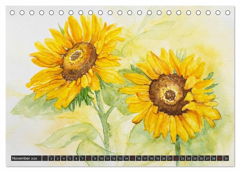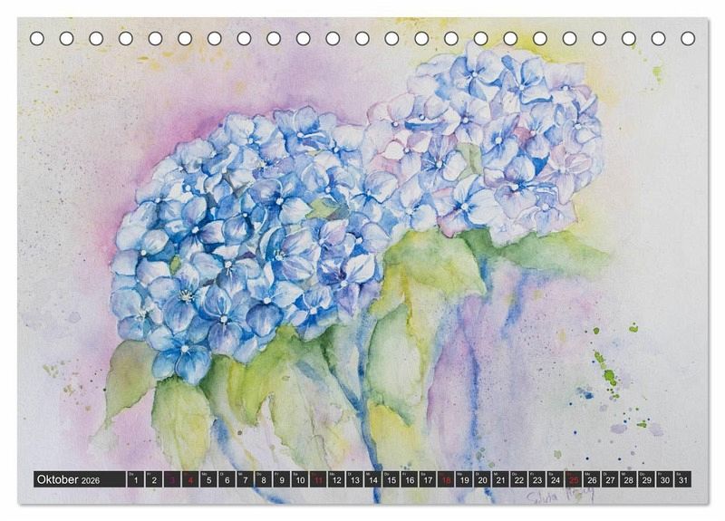 Kunstkalender mit Blumenmotiven in Aquarell.