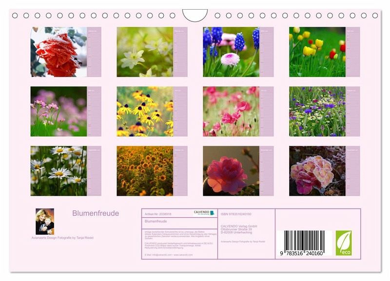 QUALITÄT - Hochwertiger Fotokalender mit 12 wunderschönen Motiven auf lichtbeständigem Bilderdruckpapier, robuste Spiralbindung mit Aufhängebügel.NACHHALTIG - deutliche Abfallreduzierung durch bedarfsgerechte Einzelstückfertigung, umweltfreundliches FSC-zertifiziertes Papier, Produktion in Deutschland, klimabewusste Logistik.PERFEKTES GESCHENK - Kalender für Freunde und Familie, für Kinder und Erwachsene, jung und alt, zu Weihnachten, Geburtstag oder zwischendurch.VIELFALT - Bildkalender in verschiedenen Formaten, z.B. DIN A5, DIN A4, DIN A3 sowie DIN A2. Ob Naturmotiv, Gemälde oder Fotos, ideal für ein persönliches Wohlfühlambiente.Mit wunderschönen Blumen und Blütenbilder durch das Jahr von Autor(in): Tanja Riedel
