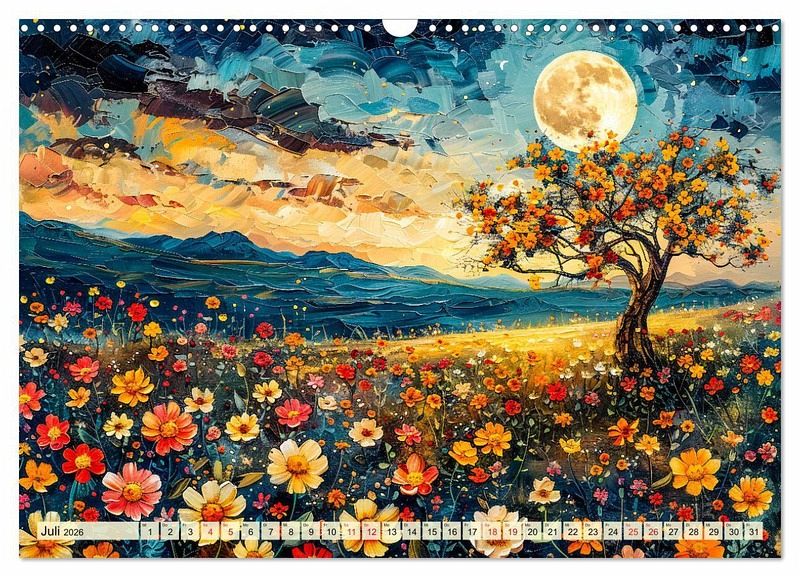 Tauchen Sie ein in eine Welt voller Magie und Romantik mit unserem einzigartigen Kalender "Blumennächte im Mondlicht - Poesie des Himmels und der Erde". Dieser wunderschöne KI-generierte Kalender bringt Ihnen die atemberaubende Schönheit von Blumenlandschaften, die im sanften Schein des Mondlichts erstrahlen, direkt nach Hause.