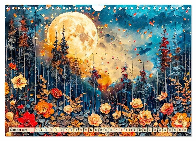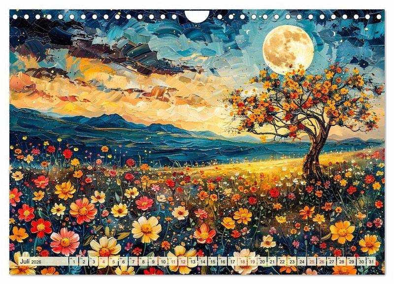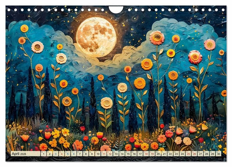 Tauchen Sie ein in eine Welt voller Magie und Romantik mit unserem einzigartigen Kalender "Blumennächte im Mondlicht - Poesie des Himmels und der Erde". Dieser wunderschöne KI-generierte Kalender bringt Ihnen die atemberaubende Schönheit von Blumenlandschaften, die im sanften Schein des Mondlichts erstrahlen, direkt nach Hause.