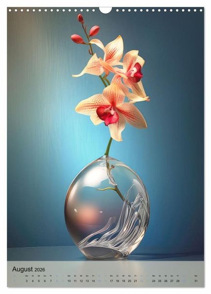 Erleben Sie die anmutige Schönheit von Blumen mit unserem neuen Kalender "Blumenpracht in edlen Vasen". Inspiriert von dem japanischen Stil präsentiert dieser Kalender eine Sammlung von Blumen in einzigartigen und eleganten Vasen. Jeden Monat wird Sie eine neue Augenweide erfreuen und Ihnen die Farbenpracht und die Kreativität der Natur mit einer bezaubernden Auswahl von Blumen näherbringen. Die prachtvollen Bilder, erstellt mit Hilfe der KI, werden Sie begeistern und zum Träumen bringen. Dieser Kalender ist ein Muss für alle Blumenliebhaber und eine wunderschöne Dekoration für jeden Raum. Lassen Sie sich verzaubern von der Eleganz der Blumen in dem neuen Kalender "Blumenpracht in edlen Vasen".