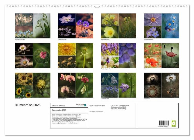 QUALITÄT - Hochwertiger Fotokalender mit 12 wunderschönen Motiven auf lichtbeständigem Bilderdruckpapier, robuste Spiralbindung mit Aufhängebügel.NACHHALTIG - deutliche Abfallreduzierung durch bedarfsgerechte Einzelstückfertigung, umweltfreundliches FSC-zertifiziertes Papier, Produktion in Deutschland, klimabewusste Logistik.PERFEKTES GESCHENK - Kalender für Freunde und Familie, für Kinder und Erwachsene, jung und alt, zu Weihnachten, Geburtstag oder zwischendurch.VIELFALT - Bildkalender in verschiedenen Formaten, z.B. DIN A5, DIN A4, DIN A3 sowie DIN A2. Ob Naturmotiv, Gemälde oder Fotos, ideal für ein persönliches Wohlfühlambiente.Eine bunte Reise durch die Welt der Blumen und Blüten von Autor(in): Hernegger Arnold Joseph