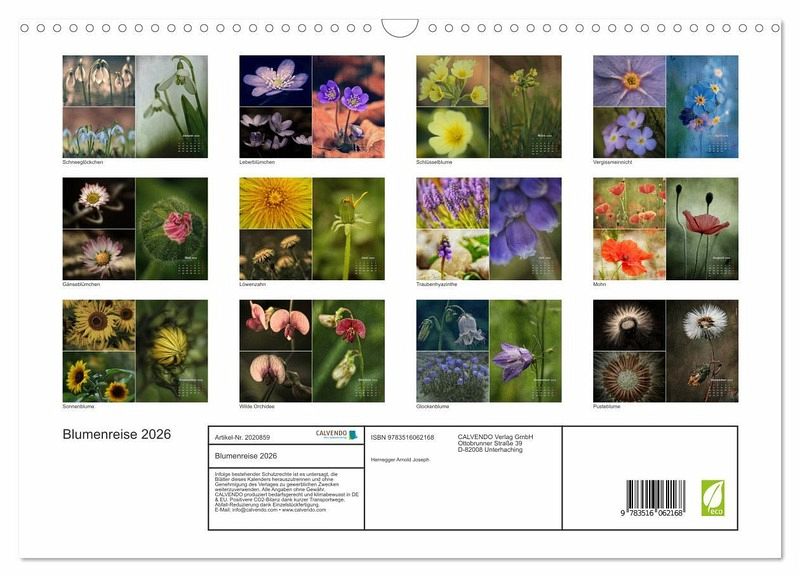QUALITÄT - Hochwertiger Fotokalender mit 12 wunderschönen Motiven auf lichtbeständigem Bilderdruckpapier, robuste Spiralbindung mit Aufhängebügel.NACHHALTIG - deutliche Abfallreduzierung durch bedarfsgerechte Einzelstückfertigung, umweltfreundliches FSC-zertifiziertes Papier, Produktion in Deutschland, klimabewusste Logistik.PERFEKTES GESCHENK - Kalender für Freunde und Familie, für Kinder und Erwachsene, jung und alt, zu Weihnachten, Geburtstag oder zwischendurch.VIELFALT - Bildkalender in verschiedenen Formaten, z.B. DIN A5, DIN A4, DIN A3 sowie DIN A2. Ob Naturmotiv, Gemälde oder Fotos, ideal für ein persönliches Wohlfühlambiente.Eine bunte Reise durch die Welt der Blumen und Blüten von Autor(in): Hernegger Arnold Joseph