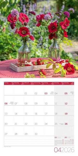 Hochwertiger Art12-Collection-BroschürenkalenderBlumen-Kalender im schlanken Hochformat: 30x30 cm, (aufgeklappt 30x60 cm)Kalendarium mit Platz für Notizen, inklusive JahresplanerAuf Papier aus nachhaltiger Forstwirtschaft in Deutschland produziertLeistet einen Beitrag zum Ackermann Firmenwald4-sprachiges Kalendarium: Deutsch, Englisch, Französisch, Italienisch