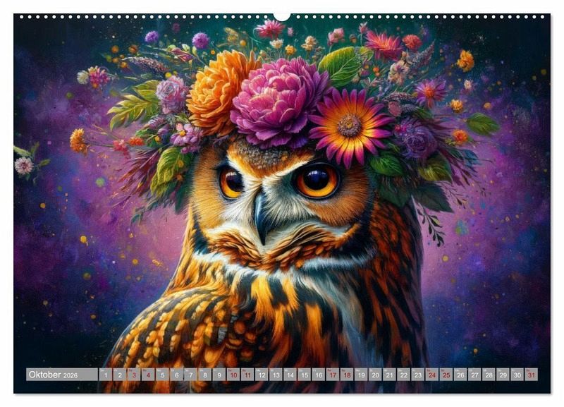 Entdecken Sie "Blumige Vogelporträts" - einen Kalender voller lebendiger und fesselnder Vogelbilder, die mit atemberaubenden floralen Kopfschmuck verziert sind. Jedes Bild zeigt die Schönheit und Eleganz verschiedener Vogelarten in beeindruckenden Farben und Details. Diese einzigartigen Kunstwerke wurden mit Hilfe von KI-Technologie erstellt. Perfekt für Naturliebhaber und Kunstfreunde!