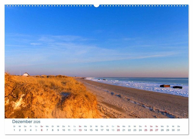 Blåvand, was übersetzt Blaues Wasser heißt und am westlichsten Punkt Dänemarks an der Nordsee liegt, bezeichnet sich selbstbewusst als besten Ferienort des Landes. Im dritten Jahr erscheint der Kalender über Blåvand, fotografiert von der Hamburger Fotokünstlerin Steffani Lehmann, die an der Nordseeküste lebt.