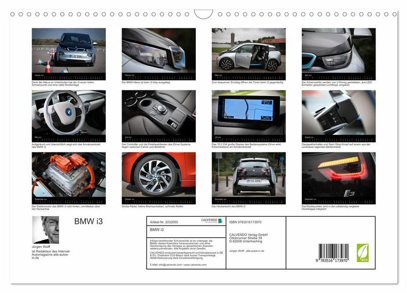QUALITÄT - Hochwertiger Fotokalender mit 12 wunderschönen Motiven auf lichtbeständigem Bilderdruckpapier, robuste Spiralbindung mit Aufhängebügel.NACHHALTIG - deutliche Abfallreduzierung durch bedarfsgerechte Einzelstückfertigung, umweltfreundliches FSC-zertifiziertes Papier, Produktion in Deutschland, klimabewusste Logistik.PERFEKTES GESCHENK - Kalender für Freunde und Familie, für Kinder und Erwachsene, jung und alt, zu Weihnachten, Geburtstag oder zwischendurch.VIELFALT - Bildkalender in verschiedenen Formaten, z.B. DIN A5, DIN A4, DIN A3 sowie DIN A2. Ob Naturmotiv, Gemälde oder Fotos, ideal für ein persönliches Wohlfühlambiente.BMW macht ernst: Mit dem i3 bringen die Bayern ihr erstes reines Elektroauto auf den Markt. von Autor(in): Jürgen Wolff