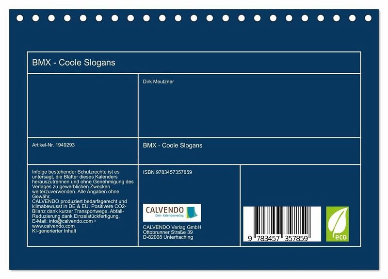 QUALITÄT - Hochwertiger Fotokalender mit 12 wunderschönen Motiven auf lichtbeständigem Bilderdruckpapier, robuste Spiralbindung.NACHHALTIG - deutliche Abfallreduzierung durch bedarfsgerechte Einzelstückfertigung, umweltfreundliches FSC-zertifiziertes Papier, Produktion in Deutschland, klimabewusste Logistik.PERFEKTES GESCHENK - Kalender für Freunde und Familie, für Kinder und Erwachsene, jung und alt, zu Weihnachten, Geburtstag oder zwischendurch.VIELFALT - Bildkalender in verschiedenen Formaten, z.B. DIN A5, DIN A4, DIN A3 sowie DIN A2. Ob Naturmotiv, Gemälde oder Fotos, ideal für ein persönliches Wohlfühlambiente.Zwölf Monate pure Action, coole Slogans und inspirierende Tricks für dein Jahr! von Autor(in): Dirk Meutzner