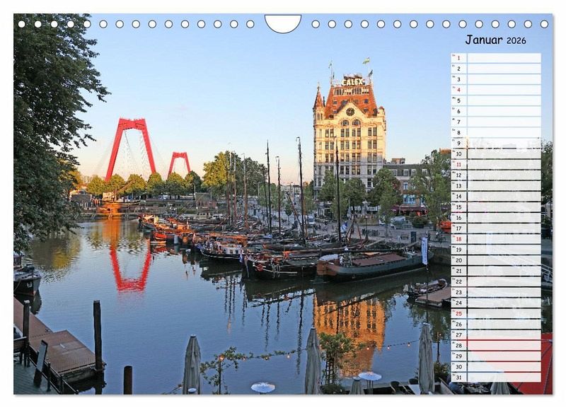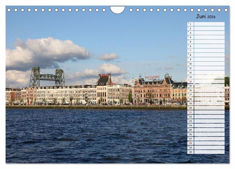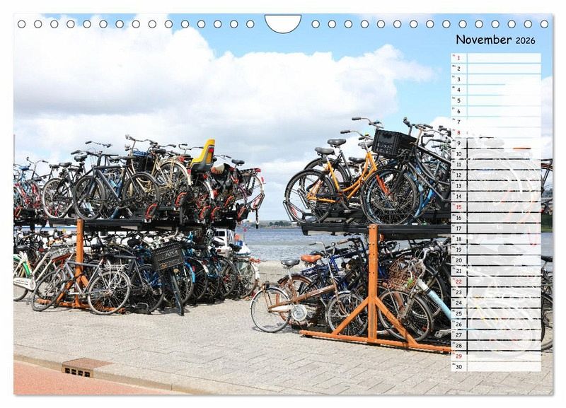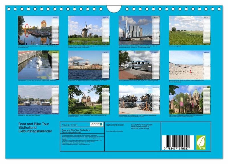 Der Kalender Boat und Bike Tour startend in Amsterdam und zeigt die schöne Landschaft, Natur und Architektur von Holland. Vom Strand Bloemendaal am See, Naturschutzgebiet Dünen, Mühlen und was Holland sehenswert macht. Das Weiße Haus, die Schleuse Zaandam, die Brücke im Rhein-Maas-Delta Rotterdam und glanzvolle niederländische Architektur.