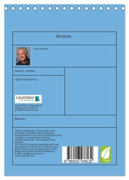 QUALITÄT - Hochwertiger Fotokalender mit 12 wunderschönen Motiven auf lichtbeständigem Bilderdruckpapier, robuste Spiralbindung.NACHHALTIG - deutliche Abfallreduzierung durch bedarfsgerechte Einzelstückfertigung, umweltfreundliches FSC-zertifiziertes Papier, Produktion in Deutschland, klimabewusste Logistik.PERFEKTES GESCHENK - Kalender für Freunde und Familie, für Kinder und Erwachsene, jung und alt, zu Weihnachten, Geburtstag oder zwischendurch.VIELFALT - Bildkalender in verschiedenen Formaten, z.B. DIN A5, DIN A4, DIN A3 sowie DIN A2. Ob Naturmotiv, Gemälde oder Fotos, ideal für ein persönliches Wohlfühlambiente.Bochum "ich komm aus Dir" von Autor(in): Uwe Reschke