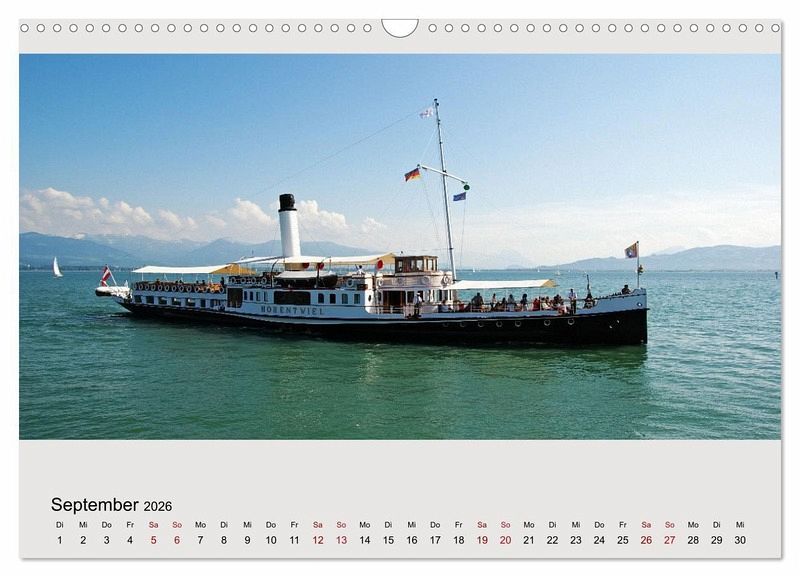September: Schaufelraddampfer Hohentwiel vor der Insel Lindau