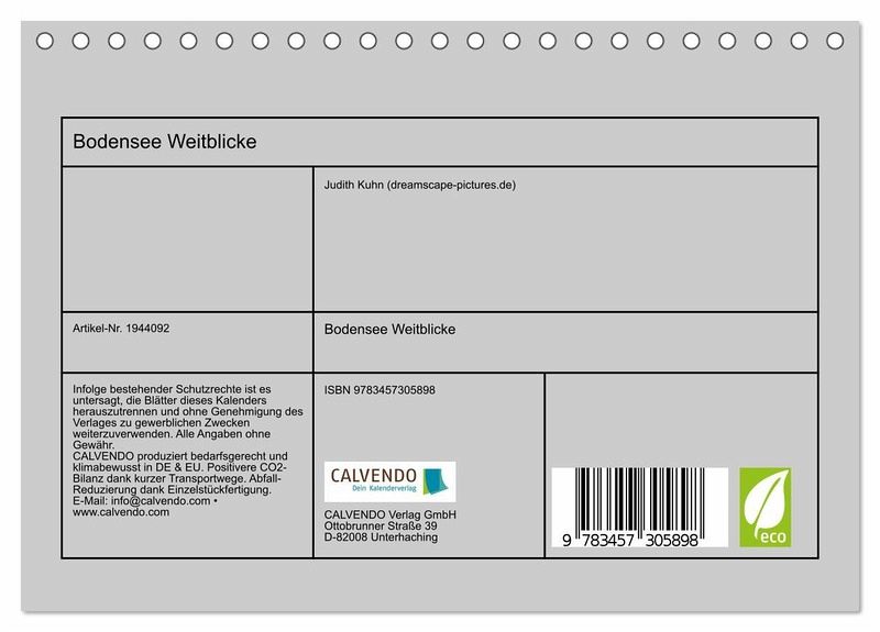 QUALITÄT - Hochwertiger Fotokalender mit 12 wunderschönen Motiven auf lichtbeständigem Bilderdruckpapier, robuste Spiralbindung.NACHHALTIG - deutliche Abfallreduzierung durch bedarfsgerechte Einzelstückfertigung, umweltfreundliches FSC-zertifiziertes Papier, Produktion in Deutschland, klimabewusste Logistik.PERFEKTES GESCHENK - Kalender für Freunde und Familie, für Kinder und Erwachsene, jung und alt, zu Weihnachten, Geburtstag oder zwischendurch.VIELFALT - Bildkalender in verschiedenen Formaten, z.B. DIN A5, DIN A4, DIN A3 sowie DIN A2. Ob Naturmotiv, Gemälde oder Fotos, ideal für ein persönliches Wohlfühlambiente.Bodenseelandschaften im Panoramaformat von Autor(in): Judith Kuhn