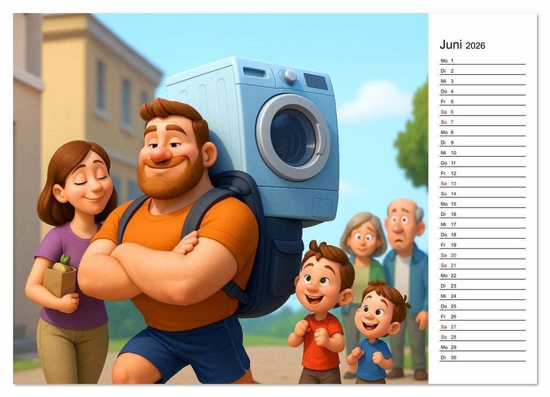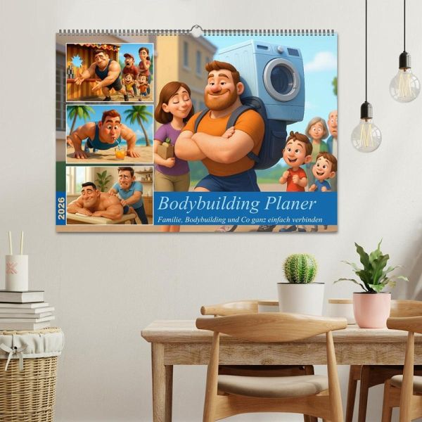 Der "Bodybuilding Planer" verbindet charmanten Familienalltag mit liebevoll übertriebener Muskelkraft - Monat für Monat. Mithilfe künstlicher Intelligenz im 3D-Stil gestaltet, zeigen die Illustrationen einen sportlichen Vater, seine fröhliche Familie und ihren wunderbar überzeichneten Alltag. Ob beim Ausflug, im Wohnzimmer oder beim Einkauf: Humor und Herz stehen immer im Fokus. Der perfekte Kalender für alle, die Training lieben - und Familie noch mehr.
