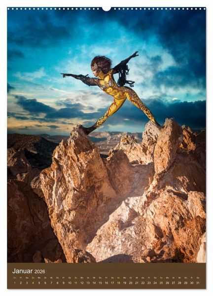 Der Mensch als Teil der Natur wird mit Bodypainting zum integrativen Kunstwerk. Dieser Kalender inspiriert mit weibliche Schönheiten in ursprünglichen Landschaften.