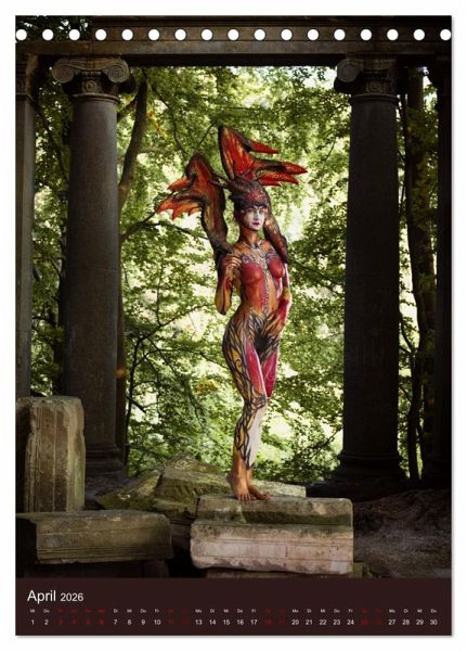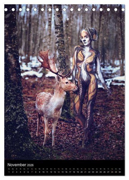 Der Mensch als Teil der Natur wird mit Bodypainting zum integrativen Kunstwerk. Dieser Kalender inspiriert mit weibliche Schönheiten in ursprünglichen Landschaften.