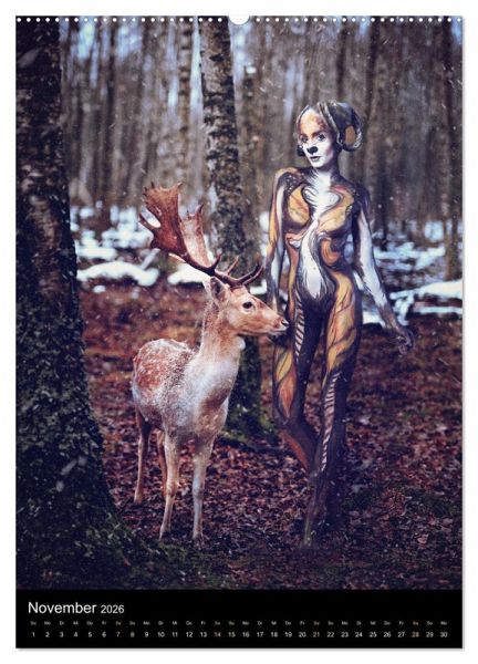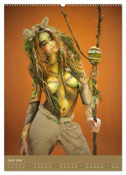 Der Mensch als Teil der Natur wird mit Bodypainting zum integrativen Kunstwerk. Dieser Kalender inspiriert mit weibliche Schönheiten in ursprünglichen Landschaften.