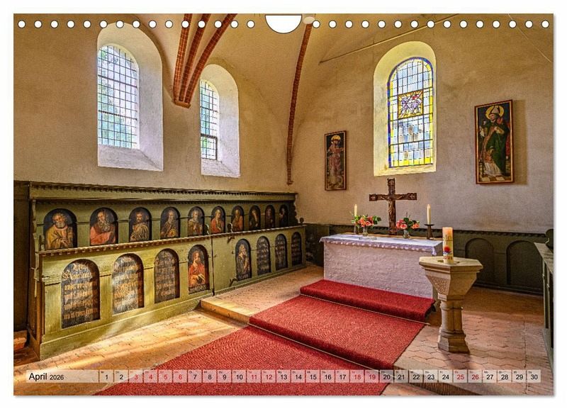 April: Altarraum der Dorfkirche mit Ältestengestühl