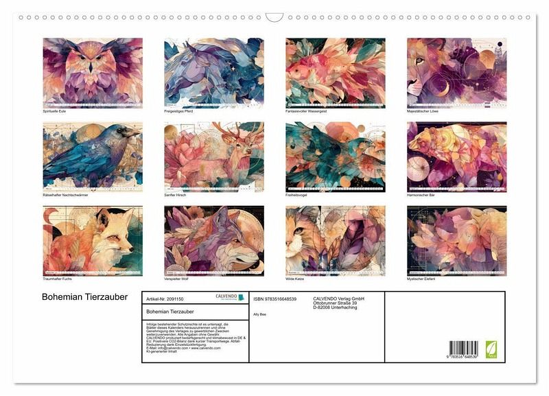 Entdecken Sie die faszinierende Welt der abstrakten Tierillustrationen im Bohemian-Stil mit unserem exklusiven KI Kalender! Jeder Monat enthüllt ein einzigartiges Kunstwerk, das die Essenz von Freiheit und Kreativität einfängt. Von mystischen Elefanten bis zu rätselhaften Raben - lassen Sie sich von der Schönheit und dem Charme dieser kunstvollen Darstellungen verzaubern. Unser Kalender ist das perfekte Geschenk für Kunstliebhaber und alle, die das Besondere schätzen. Bringen Sie mit diesen eindrucksvollen Illustrationen einen Hauch von Boho-Magie in Ihr Zuhause!