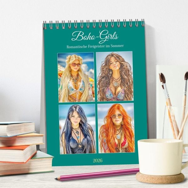 "Boho-Girls" ist eine Hommage an die Leichtigkeit des Sommers und die Kraft weiblicher Freiheit. Jede Szene fängt die Wärme der Sonne, den Hauch von Salzluft und das Gefühl unbändiger Lebenslust ein. Die mit der Hilfe von KI gestalteten Bilder zeigen faszinierende Porträts von modernen Frauen, die Natürlichkeit und Stärke zugleich verkörpern. Dieser Kalender lädt ein, zu träumen, zu spüren und das Leben barfuß im Sand zu feiern.