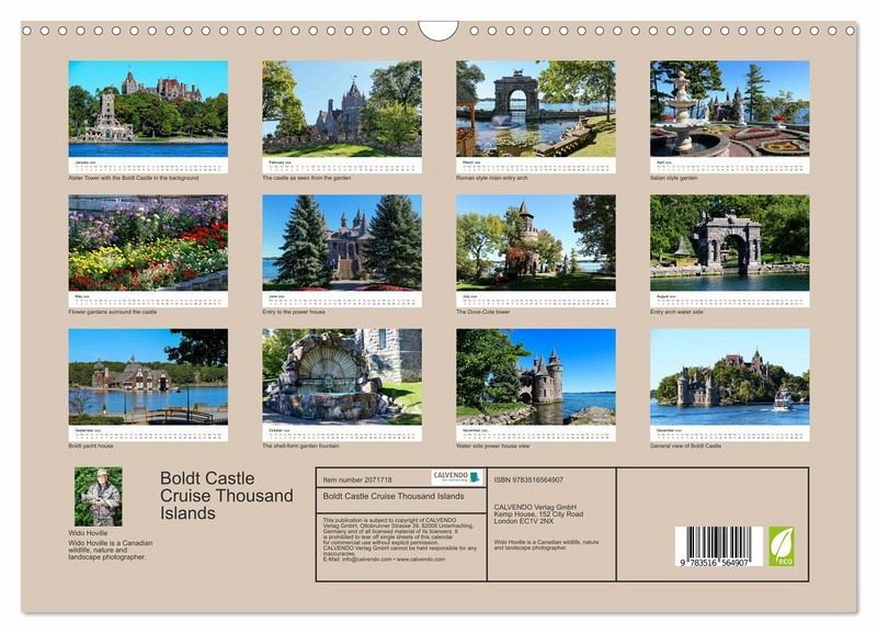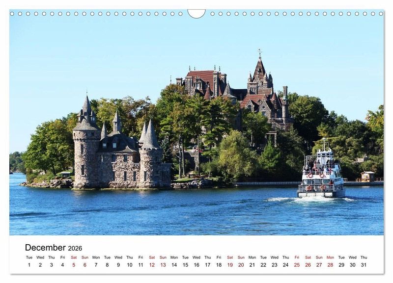 QUALITY - High-quality photo calendar with 12 beautiful images on light-resistant paper, robust spiral binding with hanger.SUSTAINABLE - Significant waste reduction due to print-on-demand production, environmentally friendly FSC-certified paper, produced in the UK, climate-conscious logistical processes.PERFECT GIFT - calendars for friends and family, for children, all ages and all occasions, from Christmas to birthdays and everything in between.LOTS OF CHOICE - Wall calendars in different sizes (DIN A4 and DIN A3), for any topic and personal taste, featuring photography, painting and illustrations.River cruise to the romantic Boldt Castle on the St-Lawrence river., author: WIDO HOVILLE
