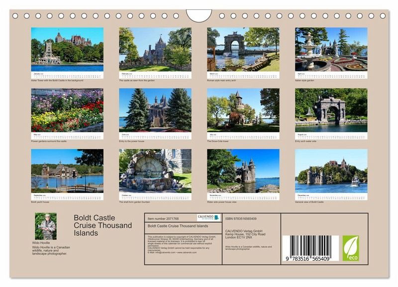 QUALITY - High-quality photo calendar with 12 beautiful images on light-resistant paper, robust spiral binding with hanger.SUSTAINABLE - Significant waste reduction due to print-on-demand production, environmentally friendly FSC-certified paper, produced in the UK, climate-conscious logistical processes.PERFECT GIFT - calendars for friends and family, for children, all ages and all occasions, from Christmas to birthdays and everything in between.LOTS OF CHOICE - Wall calendars in different sizes (DIN A4 and DIN A3), for any topic and personal taste, featuring photography, painting and illustrations.River cruise to the romantic Boldt Castle on the St-Lawrence river., author: WIDO HOVILLE