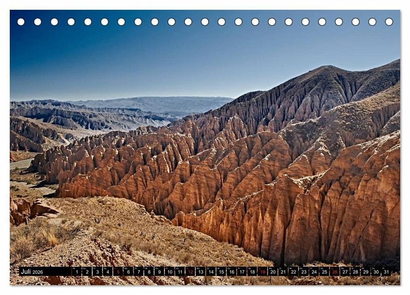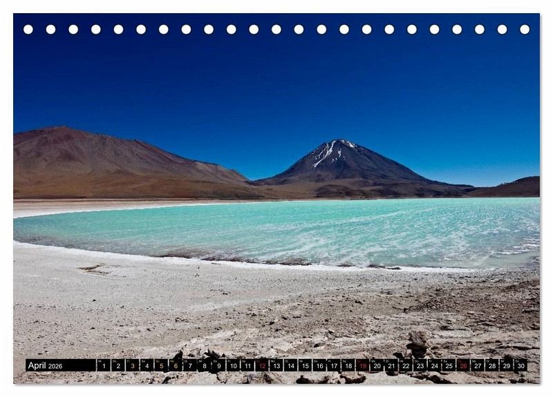 In diesem Kalender finden Sie faszinierende Fotoaufnahmen der Andenlandschaften Boliviens. Von Bildern aus der grandiosen "Reserva Nacional de Fauna Andina Eduardo Abaroa" mit ihren verwunschenen Lagunen, Geysiren und Vulkanen über beeindruckende Erosionslandschaften bis hin zum größten Salzsee der Welt, dem Salar de Uyuni.