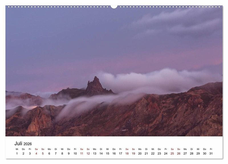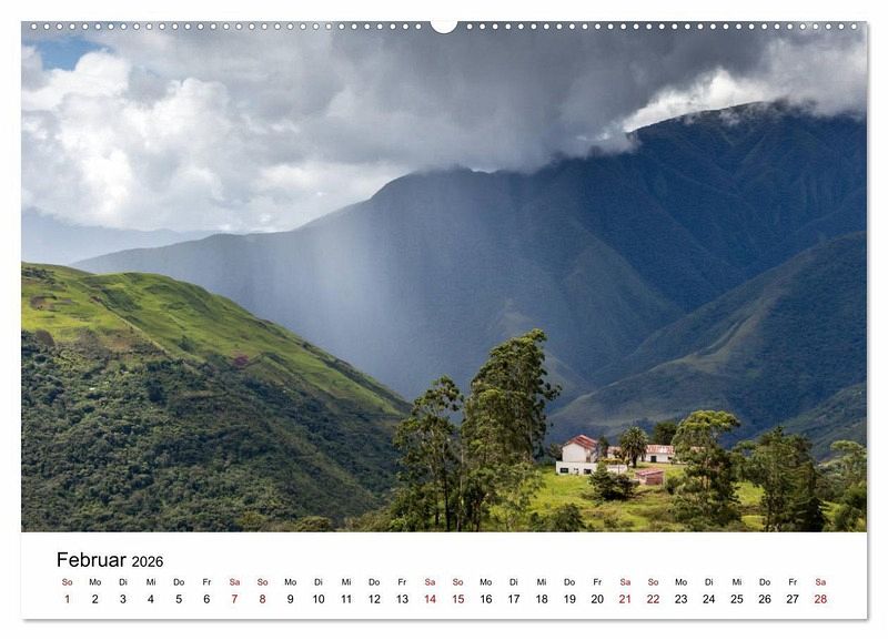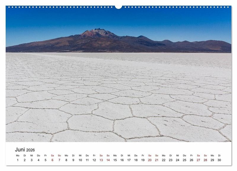 Bolivien hat eine Vielfalt an geographischen Zonen. Im Osten befinden sich die Anden mit Bergen über 6.000 m ü.M. Lagunen mit wunderschönen Farben, Salzseen und surrealistischen Wüsten. Im Westen befindet sich das Tiefland mit tropischem Klima, das feuchte Regenwälder ermöglicht. Hier findet man grüne Landschaften und schöne Wasserfälle. Der Photograph Max Glaser, präsentiert in diesem Kalender einzigartige Fotografien der wunderschönen Landschaft Boliviens.