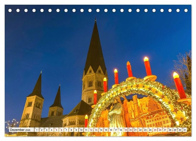 Dezember: Zu Füßen der Münsterbasilika findet sich in der Weihnachts-zeit immer der große Bonner Weihnachtsmarkt