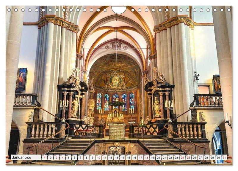 Januar: Das romanisch und gotisch gebaute Bonner Münster hat innen viele barocke Elemente wie zwei große Marmoraltäre
