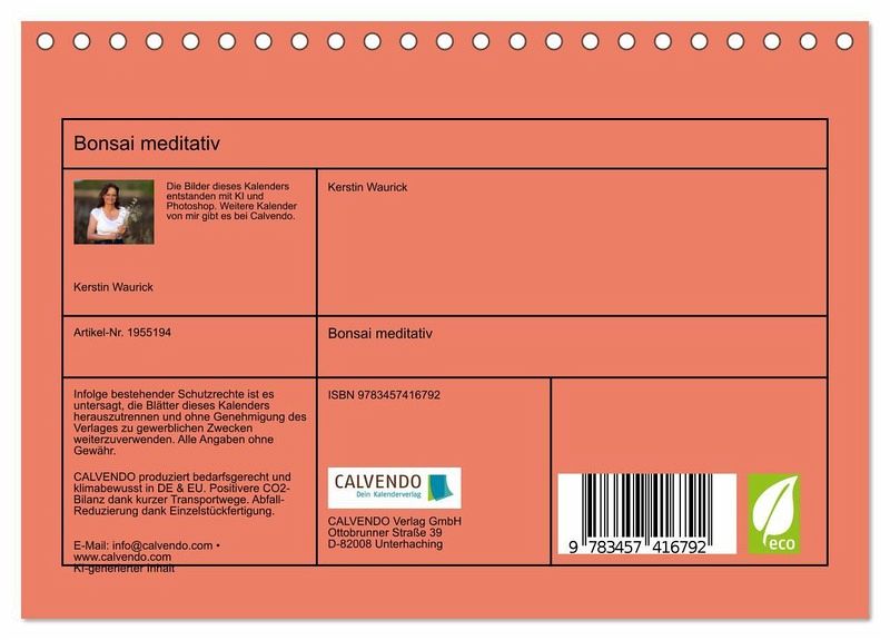 QUALITÄT - Hochwertiger Fotokalender mit 12 wunderschönen Motiven auf lichtbeständigem Bilderdruckpapier, robuste Spiralbindung.NACHHALTIG - deutliche Abfallreduzierung durch bedarfsgerechte Einzelstückfertigung, umweltfreundliches FSC-zertifiziertes Papier, Produktion in Deutschland, klimabewusste Logistik.PERFEKTES GESCHENK - Kalender für Freunde und Familie, für Kinder und Erwachsene, jung und alt, zu Weihnachten, Geburtstag oder zwischendurch.VIELFALT - Bildkalender in verschiedenen Formaten, z.B. DIN A5, DIN A4, DIN A3 sowie DIN A2. Ob Naturmotiv, Gemälde oder Fotos, ideal für ein persönliches Wohlfühlambiente.Elegante Schönheit: Bonsai, geformt mit Liebe von Autor(in): Kerstin Waurick