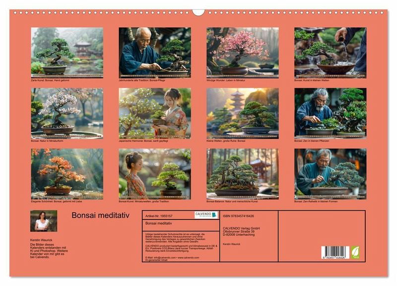 QUALITÄT - Hochwertiger Fotokalender mit 12 wunderschönen Motiven auf lichtbeständigem Bilderdruckpapier, robuste Spiralbindung mit Aufhängebügel.NACHHALTIG - deutliche Abfallreduzierung durch bedarfsgerechte Einzelstückfertigung, umweltfreundliches FSC-zertifiziertes Papier, Produktion in Deutschland, klimabewusste Logistik.PERFEKTES GESCHENK - Kalender für Freunde und Familie, für Kinder und Erwachsene, jung und alt, zu Weihnachten, Geburtstag oder zwischendurch.VIELFALT - Bildkalender in verschiedenen Formaten, z.B. DIN A5, DIN A4, DIN A3 sowie DIN A2. Ob Naturmotiv, Gemälde oder Fotos, ideal für ein persönliches Wohlfühlambiente.Elegante Schönheit: Bonsai, geformt mit Liebe von Autor(in): Kerstin Waurick