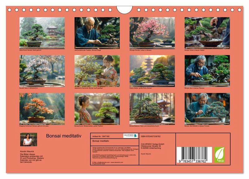 QUALITÄT - Hochwertiger Fotokalender mit 12 wunderschönen Motiven auf lichtbeständigem Bilderdruckpapier, robuste Spiralbindung mit Aufhängebügel.NACHHALTIG - deutliche Abfallreduzierung durch bedarfsgerechte Einzelstückfertigung, umweltfreundliches FSC-zertifiziertes Papier, Produktion in Deutschland, klimabewusste Logistik.PERFEKTES GESCHENK - Kalender für Freunde und Familie, für Kinder und Erwachsene, jung und alt, zu Weihnachten, Geburtstag oder zwischendurch.VIELFALT - Bildkalender in verschiedenen Formaten, z.B. DIN A5, DIN A4, DIN A3 sowie DIN A2. Ob Naturmotiv, Gemälde oder Fotos, ideal für ein persönliches Wohlfühlambiente.Elegante Schönheit: Bonsai, geformt mit Liebe von Autor(in): Kerstin Waurick