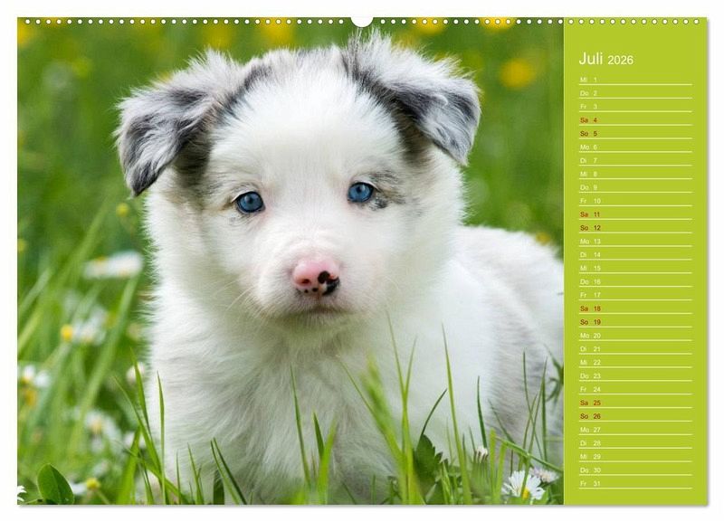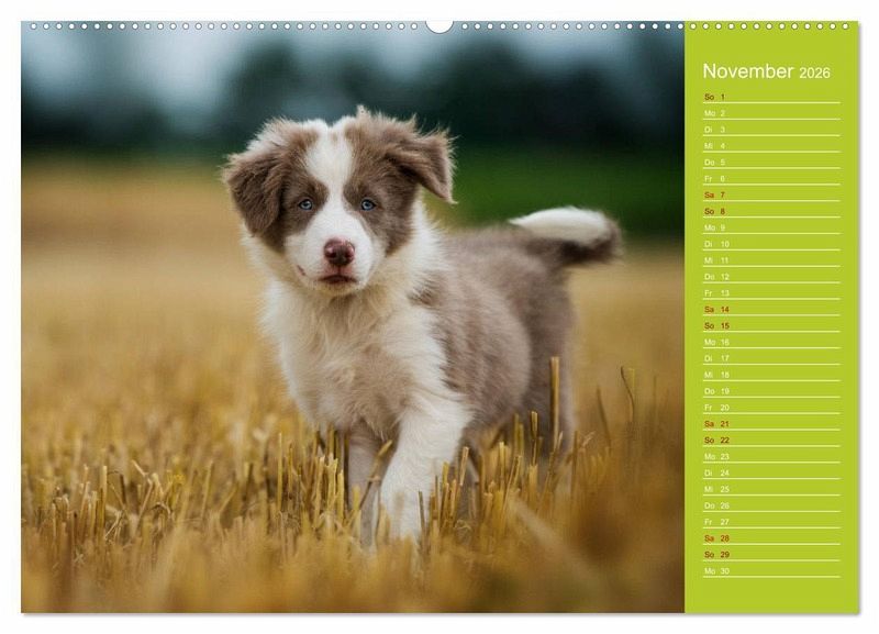 Border Collies, bei vielen immer noch im typischen schwarzweiß bekannt, gibt es in einer breiten Farbpalette. Ein paar dieser wunderbaren Farben gibt es in diesem Kalender zu sehen.