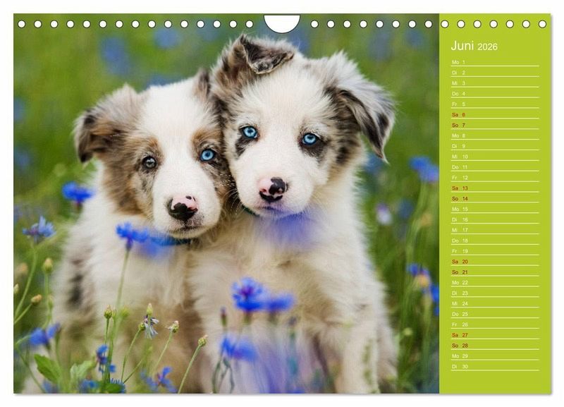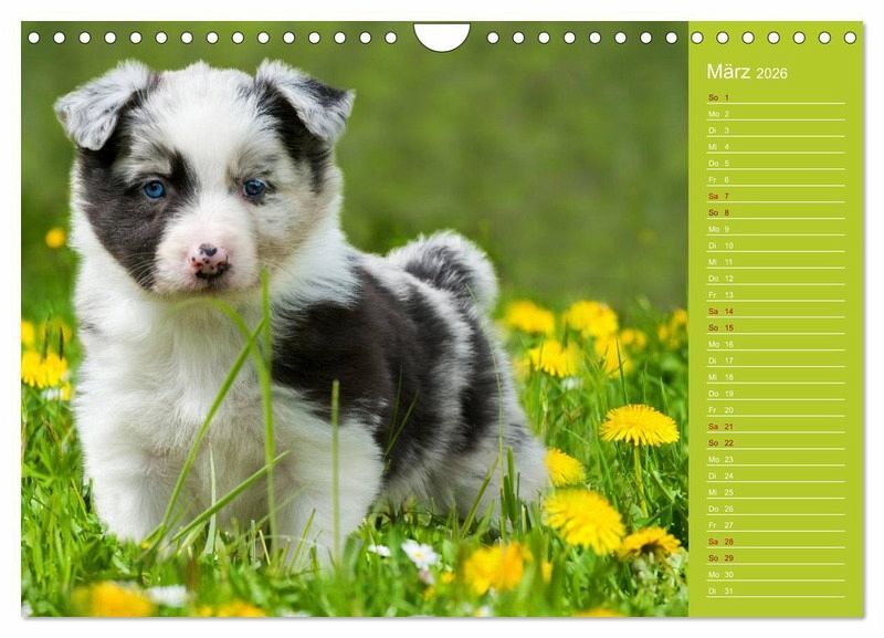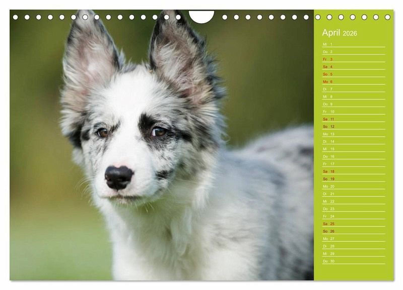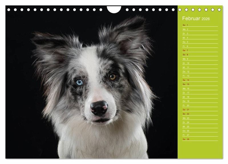 Border Collies, bei vielen immer noch im typischen schwarzweiß bekannt, gibt es in einer breiten Farbpalette. Ein paar dieser wunderbaren Farben gibt es in diesem Kalender zu sehen.