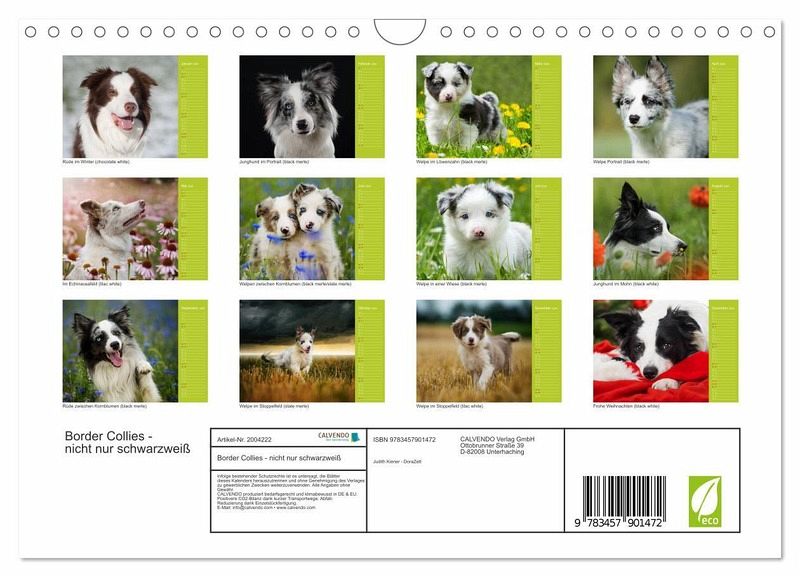QUALITÄT - Hochwertiger Fotokalender mit 12 wunderschönen Motiven auf lichtbeständigem Bilderdruckpapier, robuste Spiralbindung mit Aufhängebügel.NACHHALTIG - deutliche Abfallreduzierung durch bedarfsgerechte Einzelstückfertigung, umweltfreundliches FSC-zertifiziertes Papier, Produktion in Deutschland, klimabewusste Logistik.PERFEKTES GESCHENK - Kalender für Freunde und Familie, für Kinder und Erwachsene, jung und alt, zu Weihnachten, Geburtstag oder zwischendurch.VIELFALT - Bildkalender in verschiedenen Formaten, z.B. DIN A5, DIN A4, DIN A3 sowie DIN A2. ObNaturmotiv, Gemälde oder Fotos, ideal für ein persönliches Wohlfühlambiente.Border Collies in vielen Farbschlägen von Autor(in): DoraZett