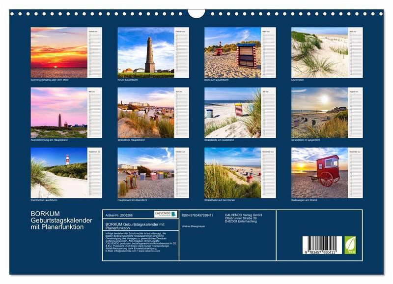 QUALITÄT - Hochwertiger Fotokalender mit 12 wunderschönen Motiven auf lichtbeständigem Bilderdruckpapier, robuste Spiralbindung mit Aufhängebügel.NACHHALTIG - deutliche Abfallreduzierung durch bedarfsgerechte Einzelstückfertigung, umweltfreundliches FSC-zertifiziertes Papier, Produktion in Deutschland, klimabewusste Logistik.PERFEKTES GESCHENK - Kalender für Freunde und Familie, für Kinder und Erwachsene, jung und alt, zu Weihnachten, Geburtstag oder zwischendurch.VIELFALT - Bildkalender in verschiedenen Formaten, z.B. DIN A5, DIN A4, DIN A3 sowie DIN A2. Ob Naturmotiv, Gemälde oder Fotos, ideal für ein persönliches Wohlfühlambiente.Typisch Borkum - Sonne, Strand und Meer von Autor(in): Andrea Dreegmeyer