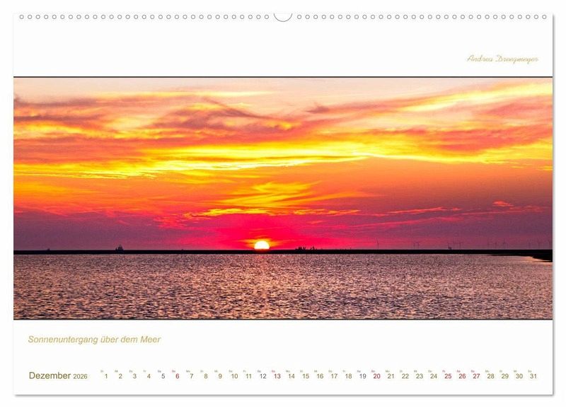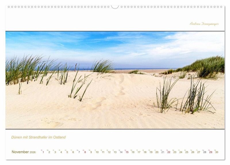 Die unendliche Weite der facettenreichen Insel wurde hier im Panoramaformat erstellt, so dass die Weite der Landschaft noch besser zur Geltung kommt. Entdecken Sie traumhafte Strände, tolle Lichtstimmungen am Meer, hören Sie die Möwen kreischen, lassen Sie sich den Wind um die Ohren wehen und spüren Sie die salzige Meeresluft. Genießen Sie Monat für Monat die zauberhaften Bilder und freuen Sie sich auf die nächste Reise nach Borkum.