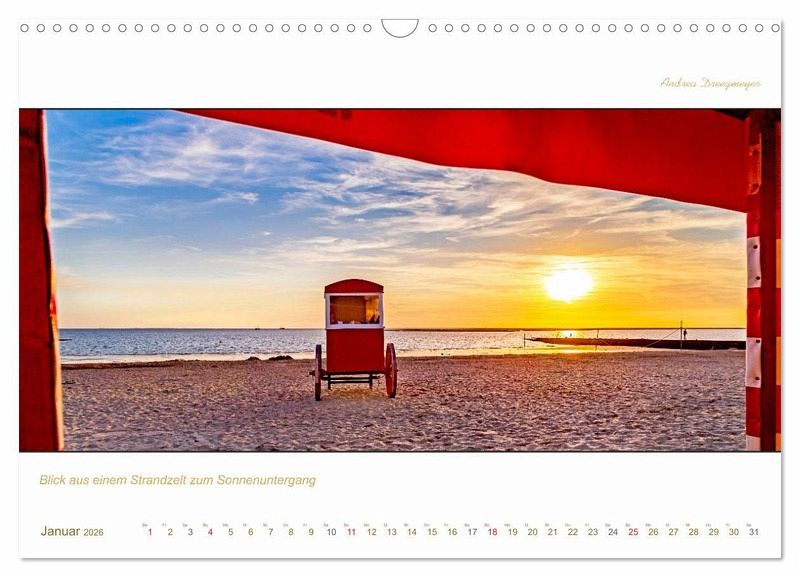 Die unendliche Weite der facettenreichen Insel wurde hier im Panoramaformat erstellt, so dass die Weite der Landschaft noch besser zur Geltung kommt. Entdecken Sie traumhafte Strände, tolle Lichtstimmungen am Meer, hören Sie die Möwen kreischen, lassen Sie sich den Wind um die Ohren wehen und spüren Sie die salzige Meeresluft. Genießen Sie Monat für Monat die zauberhaften Bilder und freuen Sie sich auf die nächste Reise nach Borkum.