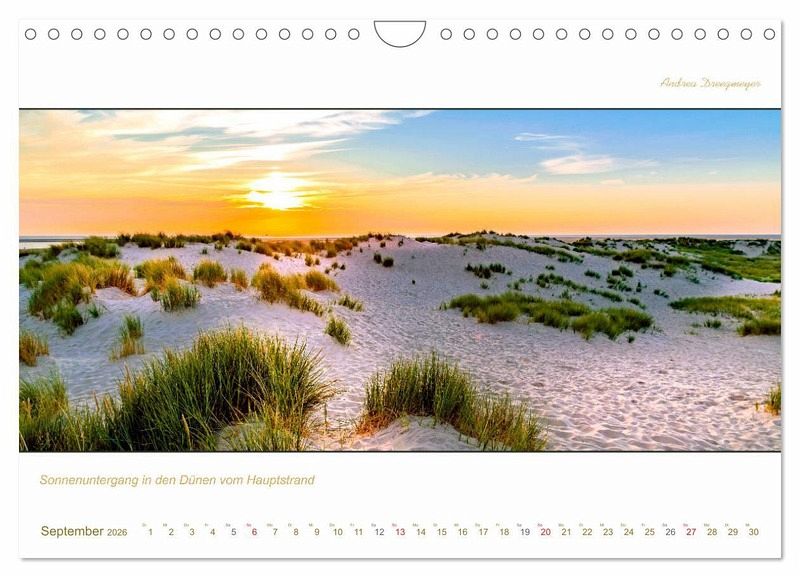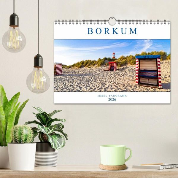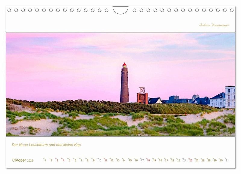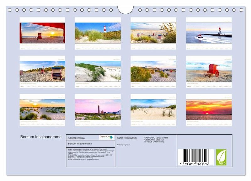 Die unendliche Weite der facettenreichen Insel wurde hier im Panoramaformat erstellt, so dass die Weite der Landschaft noch besser zur Geltung kommt. Entdecken Sie traumhafte Strände, tolle Lichtstimmungen am Meer, hören Sie die Möwen kreischen, lassen Sie sich den Wind um die Ohren wehen und spüren Sie die salzige Meeresluft. Genießen Sie Monat für Monat die zauberhaften Bilder und freuen Sie sich auf die nächste Reise nach Borkum.