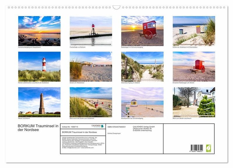 Die Insel Borkum kann den Besucher verzaubern. Eine abwechslungsreiche Natur mit Dünen, Wald und Watt und das Hochseeklima machen Borkum so einzigartig. Die Eindrücke der Insel sind mit ausgewählten Fotos festgehalten. Diese führen Sie durch das Jahr und nehmen Sie mit auf die schöne Insel und wecken die Sehnsucht in Ihnen auf den nächsten Urlaub auf Borkum.