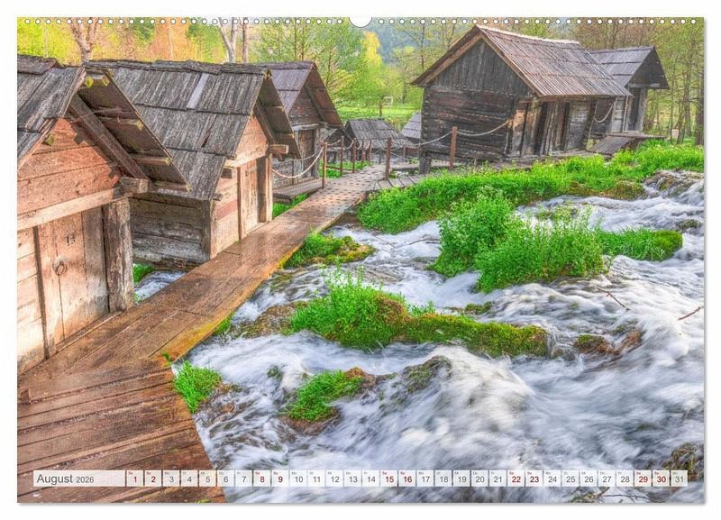 August: Traditionelle Wassermühlen an der Pliva