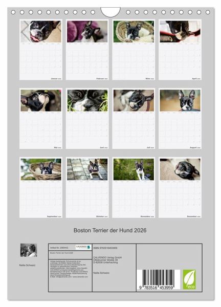 QUALITÄT - Hochwertiger Fotokalender mit 12 wunderschönen Motiven auf lichtbeständigem Bilderdruckpapier, robuste Spiralbindung mit Aufhängebügel.NACHHALTIG - deutliche Abfallreduzierung durch bedarfsgerechte Einzelstückfertigung, umweltfreundliches FSC-zertifiziertes Papier, Produktion in Deutschland, klimabewusste Logistik.PERFEKTES GESCHENK - Kalender für Freunde und Familie, für Kinder und Erwachsene, jung und alt, zu Weihnachten, Geburtstag oder zwischendurch.VIELFALT - Bildkalender in verschiedenen Formaten, z.B. DIN A5, DIN A4, DIN A3 sowie DIN A2. Ob Naturmotiv, Gemälde oder Fotos, ideal für ein persönliches Wohlfühlambiente.Ein schöner Kalender für Hundefreude und Liebhaber von Boston Terrier von Autor(in): Nailia