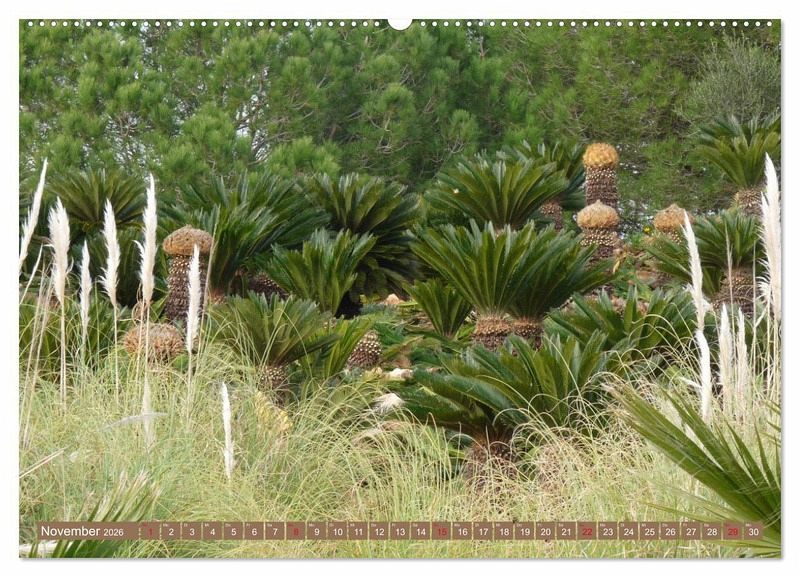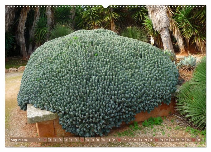Der Botanicactus ist ein Botanischer Garten im Südosten der Insel, in der Nähe von Ses Salines. Nicht nur etwa 400 Pflanzen- und 10.000 Kakteenarten sind hier zu bewundern, sondern ebenso zahlreiche Palmen, Olivenbäume und Wasserpflanzen. Selbst im Winter findet man etliche blühende Pflanzen, wie dieser wunderbare Kalender eindrucksvoll zeigt.