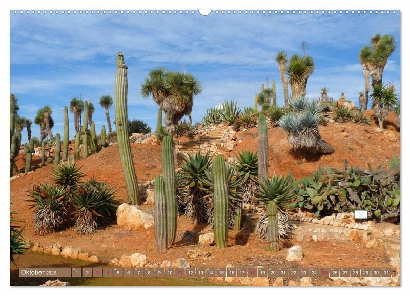 Der Botanicactus ist ein Botanischer Garten im Südosten der Insel, in der Nähe von Ses Salines. Nicht nur etwa 400 Pflanzen- und 10.000 Kakteenarten sind hier zu bewundern, sondern ebenso zahlreiche Palmen, Olivenbäume und Wasserpflanzen. Selbst im Winter findet man etliche blühende Pflanzen, wie dieser wunderbare Kalender eindrucksvoll zeigt.