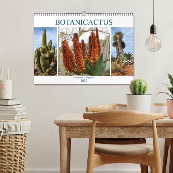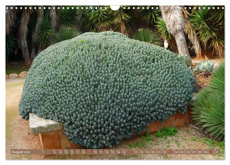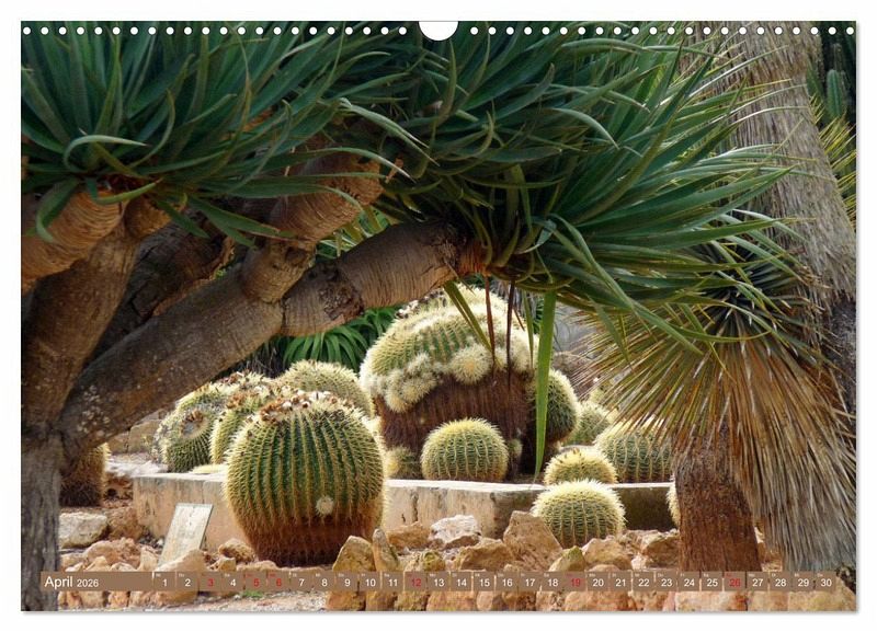 Der Botanicactus ist ein Botanischer Garten im Südosten der Insel, in der Nähe von Ses Salines. Nicht nur etwa 400 Pflanzen- und 10.000 Kakteenarten sind hier zu bewundern, sondern ebenso zahlreiche Palmen, Olivenbäume und Wasserpflanzen. Selbst im Winter findet man etliche blühende Pflanzen, wie dieser wunderbare Kalender eindrucksvoll zeigt.