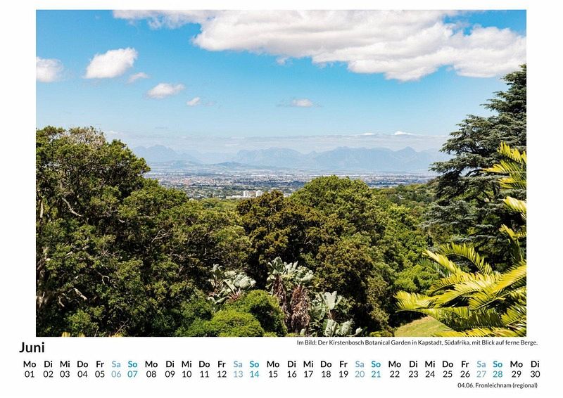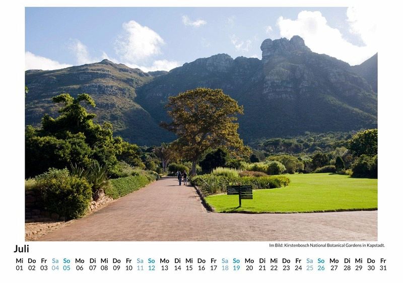 Entdecken Sie die atemberaubende Schönheit des Botanischen Gartens in Kapstadt mit unserem exklusiven Wandkalender! Lassen Sie sich Monat für Monat von 12 liebevoll ausgewählten Motiven verzaubern, die die einzigartige Pflanzenwelt und die majestätische Kulisse des Tafelbergs einfangen. Gedruckt auf hochwertigem, lichtbeständigem Bilderdruckpapier, bringt dieser Kalender die Natur direkt in Ihr Zuhause. Nachhaltigkeit liegt uns am Herzen: Unsere Kalender werden in Deutschland auf FSC-zertifiziertem Papier produziert. Holen Sie sich ein Stück Südafrika an Ihre Wand und genießen Sie das ganze Jahr über die faszinierende Vielfalt der Natur! Hochwertig Erleben Sie ein Jahr voller Eleganz mit unserem Premium-Fotokalender. Jedes der 12 Motive ist auf hochwertigem, lichtbeständigem Bilderdruckpapier gedruckt, um die Lebendigkeit jedes Bildes zu bewahren. Die robuste Spiralbindung gewährleistet Langlebigkeit und einfache Handhabung. Nachhaltig Unser Engagement für die Umwelt spiegelt sich in jedem Exemplar wider. Durch die Produktion auf Abruf reduzieren wir signifikant unseren Abfall. Wir verwenden ausschließlich umweltfreundliches, FSC-zertifiziertes Papier. Stolz gefertigt in Deutschland, achten wir bei unserer Logistik auf Klimaschutz, um unseren ökologischen Fußabdruck zu minimieren. Das ideale Geschenk Dieser Kalender ist das perfekte Präsent für jeden Anlass - ob Weihnachten, Geburtstage oder einfach als liebevolle Aufmerksamkeit zwischendurch. Geeignet für Freunde, Familie, Kinder und Erwachsene gleichermaßen, bereichert er jedes Zuhause mit seiner Vielfalt und Schönheit, unabhängig vom Alter der Beschenkten.