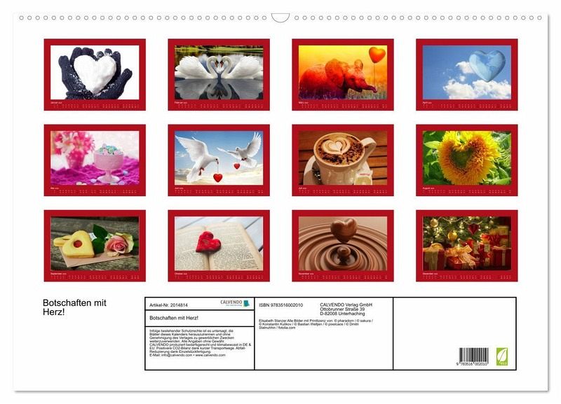 QUALITÄT - Hochwertiger Fotokalender mit 12 wunderschönen Motiven auf lichtbeständigem Bilderdruckpapier, robuste Spiralbindung mit Aufhängebügel.NACHHALTIG - deutliche Abfallreduzierung durch bedarfsgerechte Einzelstückfertigung, umweltfreundliches FSC-zertifiziertes Papier, Produktion in Deutschland, klimabewusste Logistik.PERFEKTES GESCHENK - Kalender für Freunde und Familie, für Kinder und Erwachsene, jung und alt, zu Weihnachten, Geburtstag oder zwischendurch.VIELFALT - Bildkalender in verschiedenen Formaten, z.B. DIN A5, DIN A4, DIN A3 sowie DIN A2. Ob Naturmotiv, Gemälde oder Fotos, ideal für ein persönliches Wohlfühlambiente.Dieser Kalender sagt mehr als viele Worte! von Autor(in): Elisabeth Stanzer